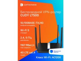 Wi-Fi роутер CUDY LT500, AC1200, черный 4379137852