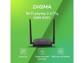 Роутер беспроводной Digma DWR-N301 N300 10/100BASE-TX черный 101966851544