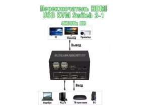HDMI KVM USB 2-1 коммутатор хдми КВМ 4к свитчер, 2 ПК на 1 монитор+клав.+мышь 3840*2160 30Hz 102295903157
