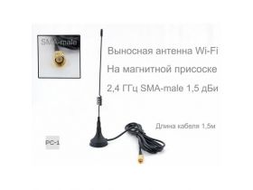 18см. Выносная Всенаправленная антенна Wi-Fi на магнитной присоске 2,4 ГГц SMA-male 1,5 дБи TX2400-XP-150. Длина кабеля 1,5м 103617058531