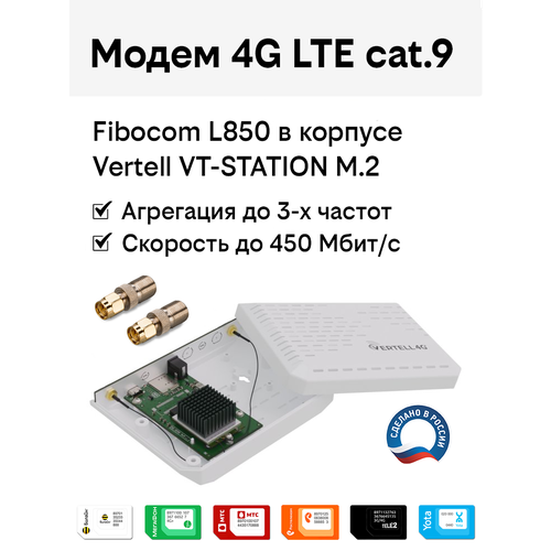 Найти - Модем 4G LTE cat.9 Fibocom L850 в корпусе Vertell VT-STATION-M.2 с антенными адаптерами SMA-F