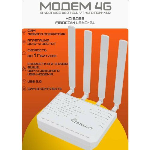 Модем M.2 VT-STATION-M.2 в корпусе на базе Fibocom L860-GL — сотовый модуль в компактном исполнении, разработанный для использования в бытовой и промышленной электронике. Модем поддерживает категорию LTE Cat. 16 и способен загружать данные на скорости до 1 Гбит/с. Высокая скорость интернет-соединения достигается сочетанием нескольких технологий: