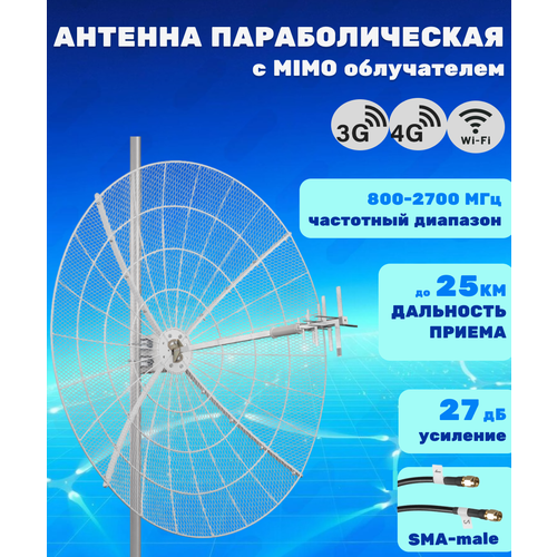 Созданная из высококачественных материалов, эта антенна устойчива к различным погодным условиям. Она рассчитана на длительное использование, даже в экстремальных условиях. Антенна оснащена разъемом SMA-male, что обеспечивает легкость подключения к вашему оборудованию. Благодаря параболической форме и прочной конструкции, антенна гарантирует максимальное усиление и точность направленности сигнала.