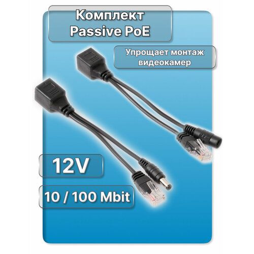 Комплект адаптеров Passive PoE предназначен для передачи питания PoE по кабелю "витая пара" Cat 5e с целью подключения оконечных сетевых устройств, не оборудованных встроенным PoE-сплиттером. Passive PoE простое и экономически эффективное решение для передачи питания через Ethernet кабель. Может питать устройства по витой паре Ethernet CAT5E работающих со скоростью не более 100 Mбит/с. Комплект состоит из: Passive POE Splitter / Passive POE Injector.