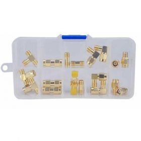 На картинке переходники показаны парами, чтобы было видно каждый тип с двух сторон. Всего в наборе 18 переходников, не 36