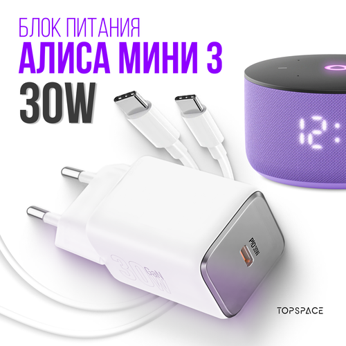 Найти - Зарядка белая с кабелем для Умной колонки Алиса Станция Мини 3 (блок 30W + шнур Type-C / Type-C до 60W 1 метр)