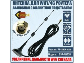 Антенна 2,4G WiFi для беспроводных устройств, RP-SMA male, усиление 3 db, модель ESP-ANT3B, Espada 101239148982