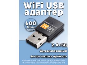 WiFi Адаптер для компьютера USB вайфай приемник 5G 2.4G 600 Мбит/с wi-fi 101978447087