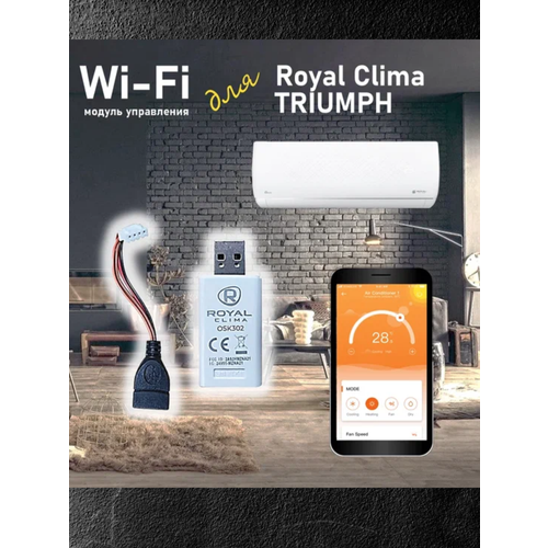 Wi-Fi адаптер Royal Clima OSK302 разработан специально для удаленного управления кондиционерами Royal Clima Triumph и Triumph Inverter. Девайс изготовлен в виде обычной USB «флешки», а для его установки не требуется вызов сервисной службы - просто поднимите лицевую панель внутреннего блока кондиционера и вставьте модуль в USB разъем. Доработка кондиционеров Royal Clima Triumph и Triumph Inverter модулем OSK302 позволит удаленно управлять кондиционером при помощи вашего смартфона, а также забыть про использование пульта - Ваш смартфон заменит его