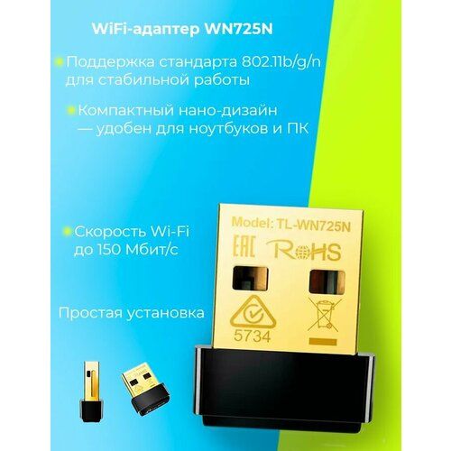 ✔ Скорость: До 150 Мбит/с (стандарт 802.11n) ✔ Частота: Только 2.4 ГГц (нет 5 ГГц) ✔ Интерфейс: USB 2.0 ✔ Размеры: Очень маленький (Nano-формат, почти не выступает из порта) ✔ Антенна: Встроенная (без усиления) ✔ Поддержка ОС: Windows 10/8.1/8/7, Linux (драйверы могут ставиться вручную)