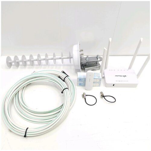 Настроенный, готовый к установке комплект Интернета на Базе популярной Mimo LTE антенны рд 17F MiMO Комплект состоит из: - 4G модем универсальный под всех операторов - WiFi роутер ОС Zyxel Keenetik 4G III - LTE Антенна РД 17F MiMO - Две кабельные сборки по 5 метров - Два переходника CRC9 - Инструкция по сборке составленная нашими специалистами Характеристики Комплекта: - Работает со всеми операторами МТС Билайн Теле2 Мегафон Yota Ростелеком - Скорость до 150Мб\сек - WiFi покрытие до 150м2 - Прием сигнала 4G до 15Км - Частоты усиления 4G 1700-1900МГц - Коэффициент усиления антенны 2*17Дб MiMO - 4 LAN порта для проводного подключения устройств
