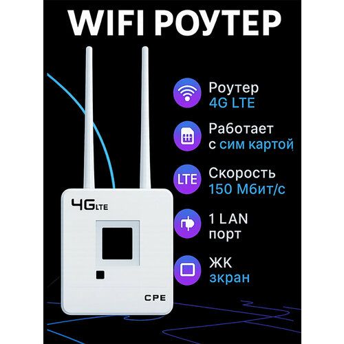 Найти - Wifi роутер, 4g LTE роутер, wifi роутер с сим картой для квартиры, максимальная скорость 150 мбит, ЖК экран, 1 LAN порт, белый