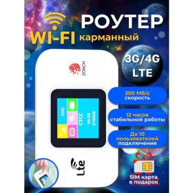 4g модем Wifi + СИМ карта В подарок Переносной, мобильный, С цветным дисплеем. ВЕС всего 90гр.
