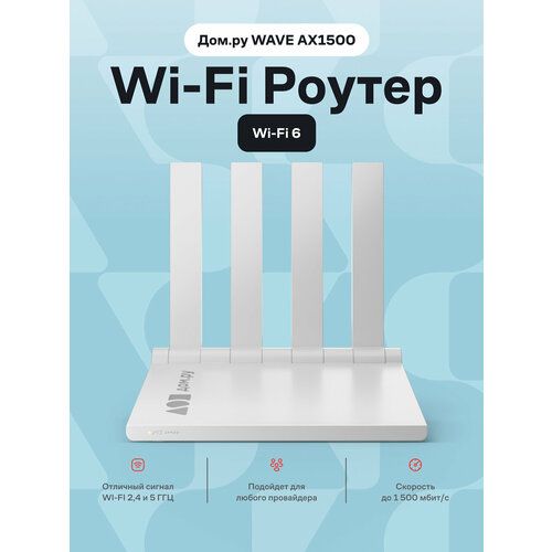 Маршрутизатор Wi-Fi роутер Дом. ру Wave AX1500 белый – собственная оригинальная разработка компании Дом. ру. Это современное сетевое решение с поддержкой Wi-Fi 6 для стабильного интернет-соединения.