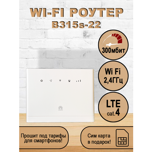 Представляем вашему вниманию роутер Wi-Fi B315s-22 — идеальное решение для стабильного интернет-соединения дома или в офисе, а так же для дачи. Роутер с сим картой B315s-22 это действительно надежный девайс с поддержкой любых операторов. Этот универсальный маршрутизатор обеспечит вас качественным 4G интернетом независимо от того, услугами какого оператора вы пользуетесь: будь то Билайн, МТС, Мегафон, Теле2, Ростелеком или YOTA. Почему именно B315?