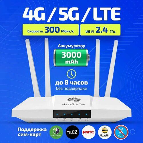 Найти - WI-FI роутер с поддержкой сим-карт, wifi роутер для дома, 4G 5G LTE роутер с аккумулятором 3000 mAh, вай фай роутер