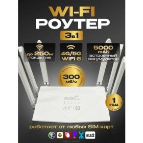 Найти - Роутер WIFI 6 с сим картой 4G/5G и встроенным аккумулятором 5000 мАч, скорость до 300 Мбит/с, до 64 устройств