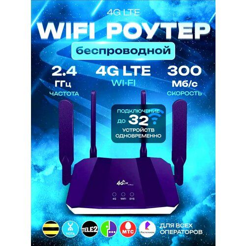 Найти - Мощный прошитый 4G LTE маршрутизатор с экраном / Wi-Fi роутер с сим картой, подключение до 32 устройств, скорость до 300 Мбит/с, синий + SIM в подарок