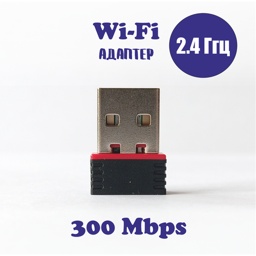 Беспроводной Wi-Fi адаптер для компьютера (USB 2.0) позволяет подключить настольный компьютер, моноблок или ноутбук к беспроводной сети через порт USB. Максимальная мощность сетевого адаптера до 300 Мбит. Главное достоинство адаптера в том, что он очень компактный и нет длинной антенны, при этом мощность остается прежней. Через беспроводной USB адаптер Wi-Fi можно без проблем просматривать видео на большой скорости, общаться в видеоконференциях и загружать файлы большого объёма. Wi-Fi совместим c Windows 7/8/10/11/XP/Vista/Linux/Mac