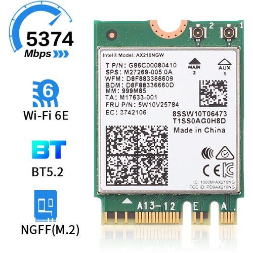 Найти - Адаптер беспроводной связи (Wi-Fi) Intel Адаптер беспроводных локальных сетей Intel® Wi-Fi 6E AX210 (Gig+) (AX210NGW) PCIE M.2 AX210. NGWG уц- INTEL M.2 E Key 2230, 2x2 AX+BT (Wi-Fi(PCIe), BT(USB))