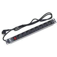 блок с евророзетками - для 19 дюймовых шкафов – горизонтальный - 8 розеток - 16 A – выключатель - шнур 2 метра - алюминиевый корпус- немецкий стандарт