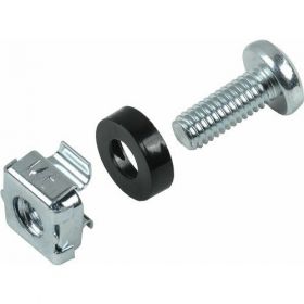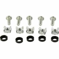 Набор винт-шайба-гайка необходим для крепления оборудования на монтажные профили шкафов и стоек. Гайки в наборе имеют квадратную форму и специальные "лапки", прочно фиксирующие их в квадратном отверстии монтажных профилей, что облегчает установку оборудования, т. к. нет необходимости держать гайку руками. Также в наборе предусмотрены пластиковые шайбы, предотвращающие повреждение оборудования при затягивании винтов в гайку.