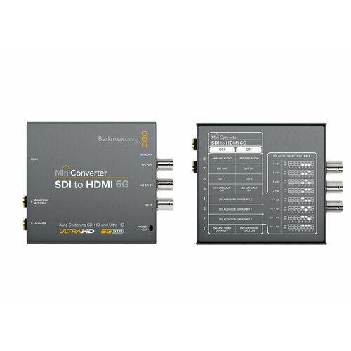 Blackmagic Mini Converter - SDI to HDMI 6G обеспечивает передачу сигналов SD, HD, 3G (Level A или Level B) и 6G-SDI на HDMI-оборудование при работе с SD-, HD- и Ultra HD-форматами. Это позволяет пользователям легко и быстро подключать свои устройства к различным мониторам, проекторам и другим устройствам отображения.