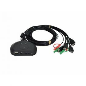 Конструкция для экономики пространства Компактный 2-портовый HDMI KVM-переключатель KS-is KS-767 со встроенными кабелями обеспечивает управление по шине двумя компьютерами с портами USB, HDMI с 1 консоли рабочей станции.