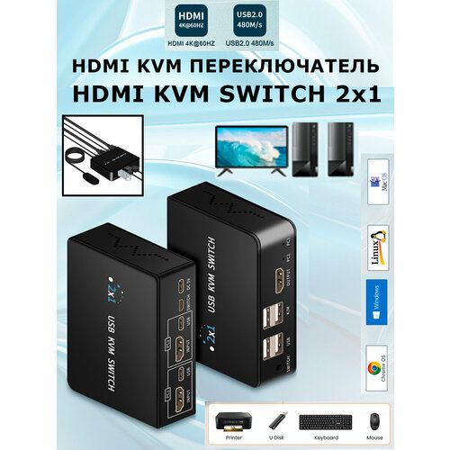 2 Port KVM SWITCH HDMI USB полностью совместим 4К/60HZ, HDMI 2.0, HDCP 2.2, USB 2.0 поддерживает широкий экран. Поддержка цифровых мониторов 480i,480p,720p,1080i and 1080p(HDTV),3D,4K*2K(Ultra HD)