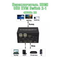 4K USB HDMI KVM Switch свитч, переключатель квм 2-1 свитчер модель 2023 года с выносной кнопкой 102436600257