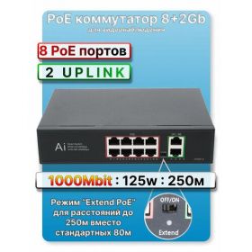Найти - Коммутатор (свитч) PoE 8 портов +2 LAN Гигабит для IP видеонаблюдения