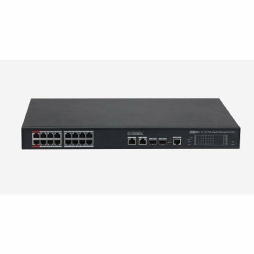 Найти - DAHUA Коммутаторы DAHUA DH-S4220-16GT-190 16-портовый гигабитный управляемый коммутатор с PoE, уровень L2, 16xRJ45 1Gb PoE, 2xRJ45 1Gb, 2xSFP 1Gb, суммарно до 190Вт, коммутация 56 Гбит/с, MAC-таблица 8к