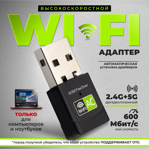 Найти - Адаптер USB Wi-Fi 600 Мбит/с двух диапазонный 2.4 и 5 ГГЦ, беспроводной приемник вайфай для компьютера, сетевая карта для пк 802.11ac, черный