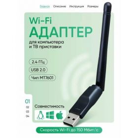 Для организации беспроводного доступа в интернет предлагаем вам Wi-Fi адаптер. Это сетевое переносное оборудование, позволяющее подключить компьютер, ТВ приставку и другие устройства к вашей Wi-Fi сети для осуществления надежного и качественного соединения, удобства передачи данных при работе с ПК. Отличная идея подарка геймеру, программисту и IT специалисту в офис, нужное приобретение для дома или дачи.