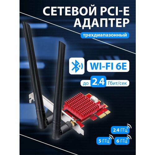 Высокоскоростной беспроводной адаптер с поддержкой стандарта Wi-Fi 6Е и Bluetooth 5.2 для персонального компьютера (устанавливается в слот PCI-E на материнской плате).