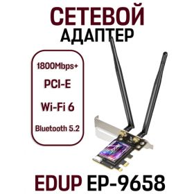 Найти - Двухдиапазонный сетевой адаптер, сетевая PCI карта Express EDUP 1800Mbps+ Wi-Fi 6 Bluetooth 5.2 (EP-9658), черный