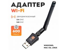 WiFi USB Адаптер 2,4 Ггц, 5 Ггц до 600 Мбит/с (433 + 150 Мбит/с) RTL8811 для компьютеров, 802.11b/g/n со встроенной антенной / Вайфай адаптер для ПК, Беспроводной приемник для компьютера 103121921950