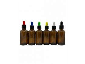 Набор пипеток для эфирных масел, флакон 50 мл, 6 штук, янтарное стекло, черная крышка, разноцветная груша 102780384404