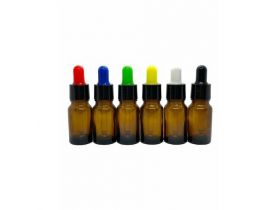 Набор пипеток для эфирных масел, флакон 10 мл, 6 штук, янтарное стекло, черная крышка, разноцветная груша 102779120594