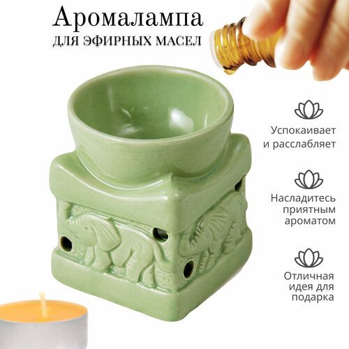 НАЙТИ ВЫГОДНЕЕ - Аромалампа Караван слонов 8 см квадро оливковая глянцевая