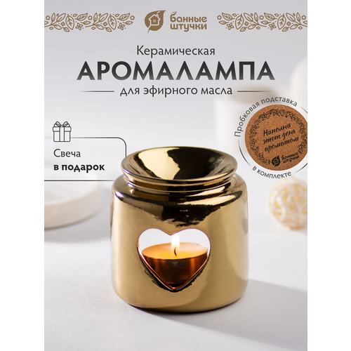 Найти - Аромалампа Банные штучки Сердце, для бани и сауны, с золотой свечой, 7.5x7.5 см