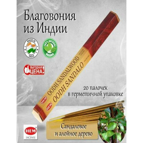 НАЙТИ ВЫГОДНЕЕ - Благовония HEM OODH-SANDALWOOD Магический сандал, 20 палочек
