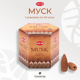 Благовония MUSK Backflow Incense Cones, Hem с обратным потоком создают эффект стелющегося дыма. Не поднимаясь вверх, ароматный дым стекает неторопливой белой рекой, наполняя впадины и чаши настольных фонтанов или специальных подставок. Благовония стелющийся дым MUSK не терпят резких движений, поэтому зажгите конус, сядьте поудобнее и просто любуйтесь спокойной красотой и волнами ароматного тумана.