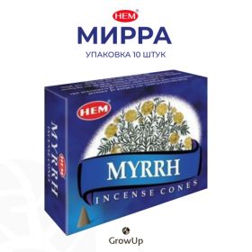 HEM Мирра - 10 шт, ароматические благовония, конусовидные, конусы с подставкой, Myrrh - ХЕМ