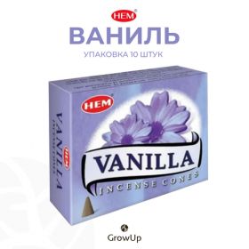 HEM Ваниль - 10 шт, ароматические благовония, конусовидные, конусы с подставкой, Vanilla - ХЕМ