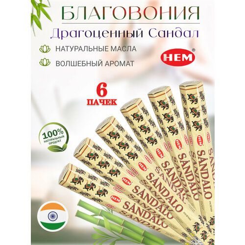 Аромат: сладкий с терпко-пряным оттенком. Благовоние HEM Sandalo (Сандал) способствует расслаблению. Полезен при бессоннице, нервном напряжении, внутренней тревоге. Считается мягким афродизиаком. Блок содержит 6 упаковок по 20 палочек.