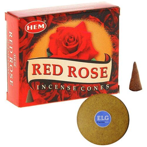 HEM Красная роза - 10 шт, ароматические благовония, конусовидные, конусы с подставкой, Red Rose - ХЕМ 101650836003