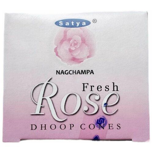 Satya Свежая роза - 12 шт, ароматические благовония, конусовидные, конусы с подставкой, Rose Fresh - Сатия, Сатья