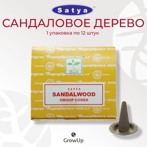 Найти - Satya Сандаловое дерево (Сандалвуд) - 12 шт, ароматические благовония, конусовидные, конусы с подставкой, Sandalwood - Сатия, Сатья