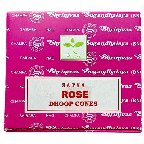 Satya Роза - 12 шт, ароматические благовония, конусовидные, конусы с подставкой, Rose - Сатия, Сатья 101660058259